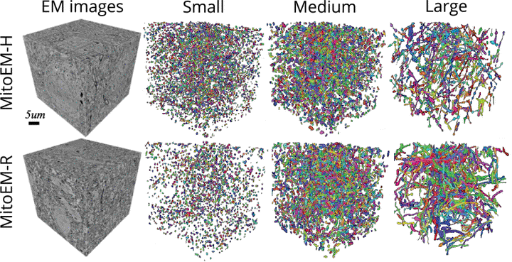 In this paper, we present the results of the MitoEM challenge on mitochondria 3D instance segmentation from electron microscopy images, organized in conjunction with the IEEE-ISBI 2021 conference. Our benchmark dataset consists of two large-scale 3D volumes, one from human and one from rat cortex tissue, which are 1,986 times larger than previously used datasets. At the time of paper submission, 257 participants had registered for the challenge, 14 teams had submitted their results, and six teams participated in the challenge workshop. Here, we present eight top-performing approaches from the challenge participants, along with our own baseline strategies. Posterior to the challenge, annotation errors in the ground truth were corrected without altering the final ranking. Additionally, we present a retrospective evaluation of the scoring system which revealed that: 1) challenge metric was permissive with the false positive predictions; and 2) size-based grouping of instances did not correctly categorize mitochondria of interest. Thus, we propose a new scoring system that better reflects the correctness of the segmentation results. Although several of the top methods are compared favorably to our own baselines, substantial errors remain unsolved for mitochondria with challenging morphologies. Thus, the challenge remains open for submission and automatic evaluation, with all volumes available for download.
